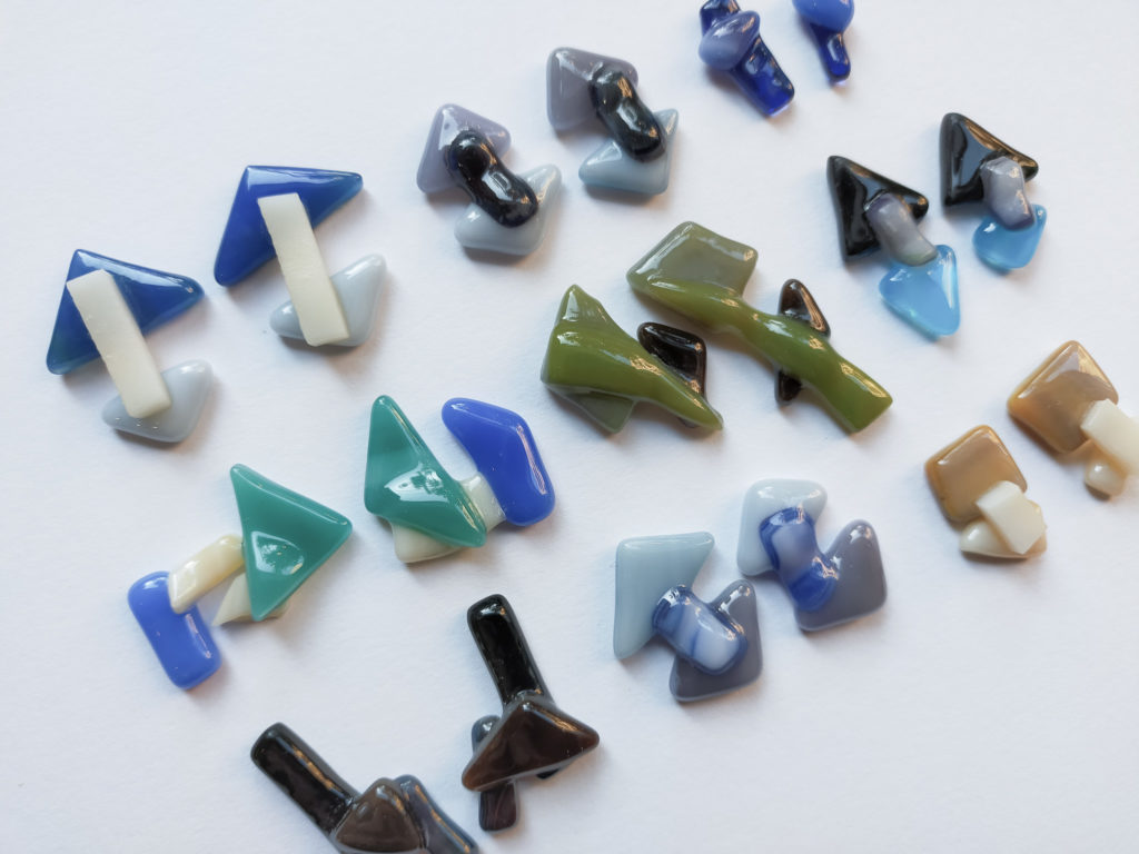 ガラスの欠片を重ねて焼成することで、熱によってそれらが溶け合い、ひとつのかたちとして定着する。